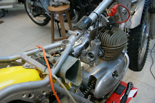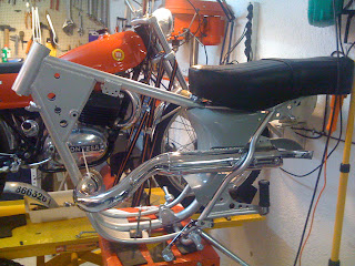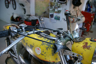 Ahora montarlas, otra historia, suerte de Jordi que vino a ayudarme, meterlas en las tijas no fue fácil, jabón y fuerza, acabe destrozado y con llagas en la mano, ademas las barras no seguían una paralela con la otra, como estaban tan soldadas con las tijas no se podían ajustar... me fui con una mala sensación...