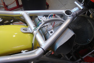He conseguido encontrar el conmutador original, una vez limpio esta muy bien, le faltan unos tornillos y además a veces hace masa y para la moto el solo (que bonito!!!), otra cosa a arreglar...