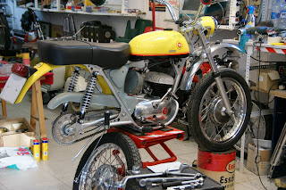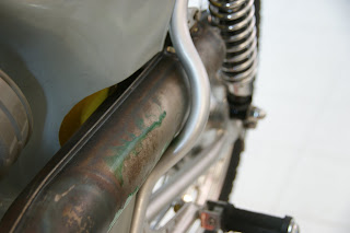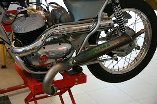 También he desmontado el escape, Ramón Exposito empezó a refabricar una replica de este modelo de 250cc pero no lo había podido probar nunca en una moto, yo lo probé hace unas semanas y no encajaba bien, ha hecho las modificaciones y ahora parece que va perfectamente.. le voy a pedir uno, así guardo el original..